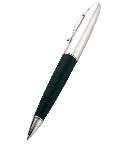 A unique pen with a textured leather grip available in